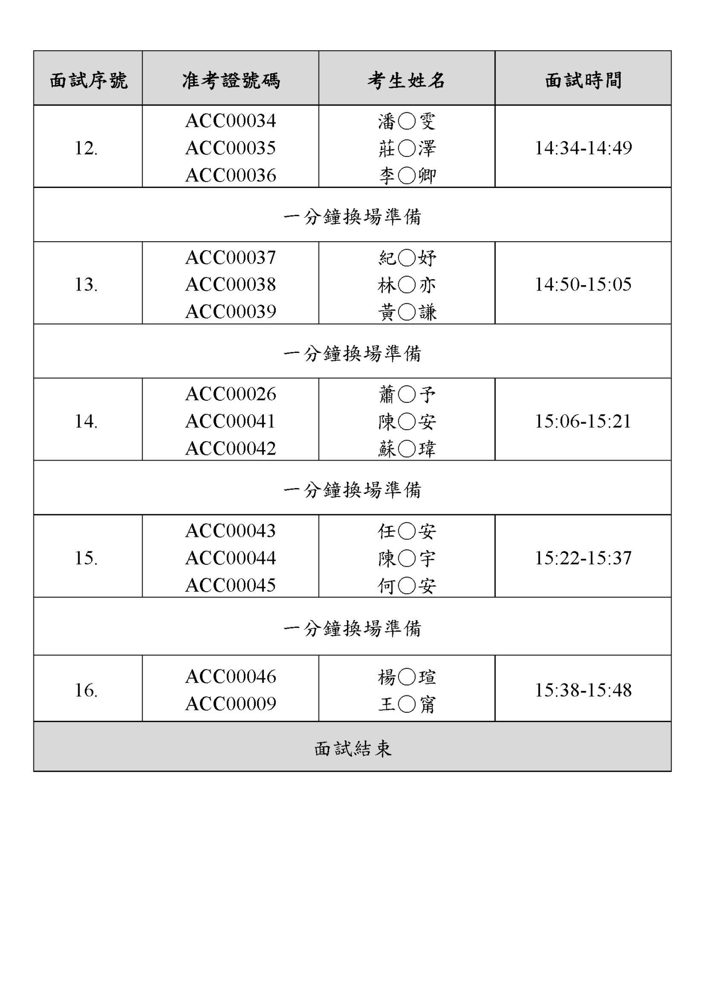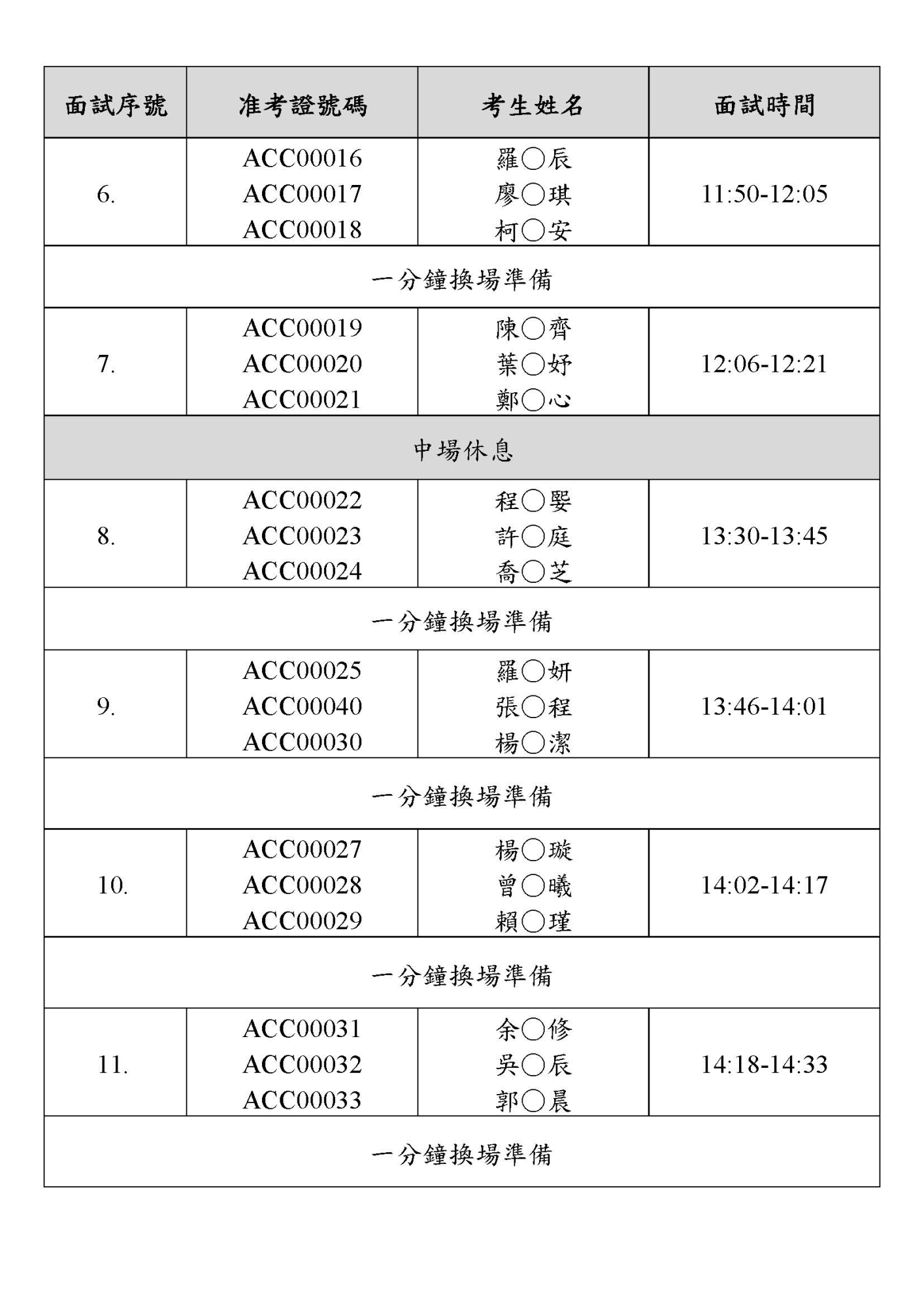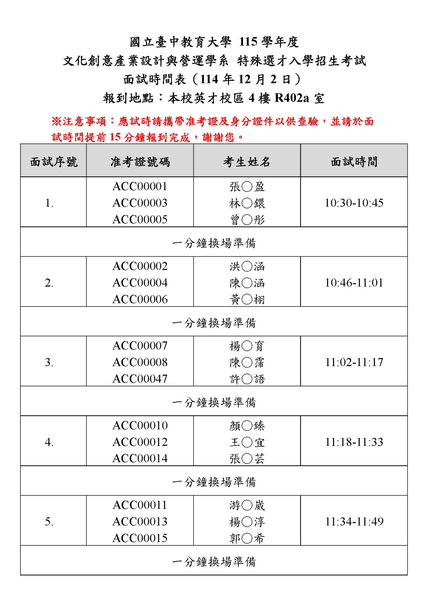 本次面試將於114年12月2日(星期二)上午10:30開始進行;面試時間表請參閱下圖。
